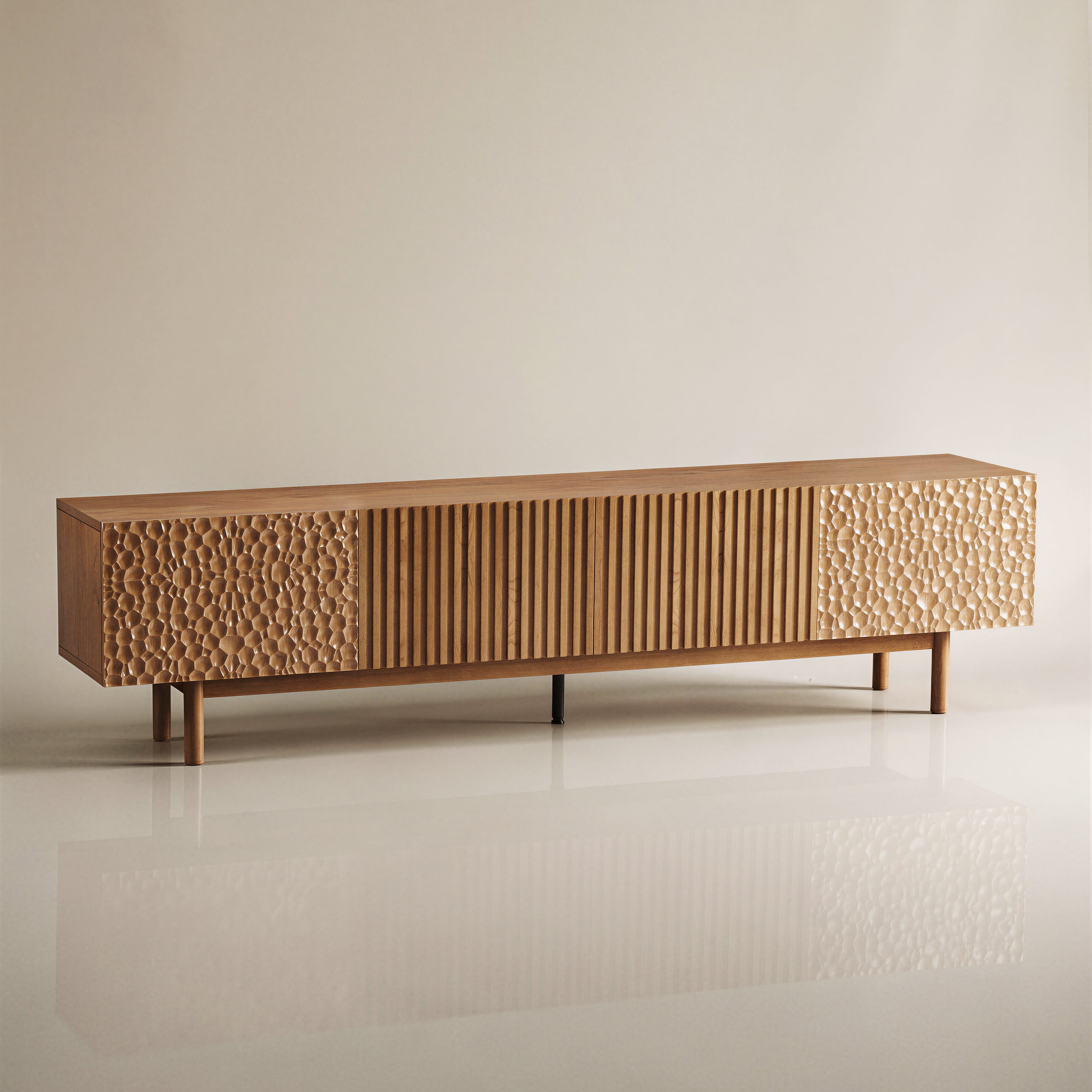 TV Stand T04-FK-M001 Mid-Century Modern Adjustable Shelves Cable Management 86.6"Deals