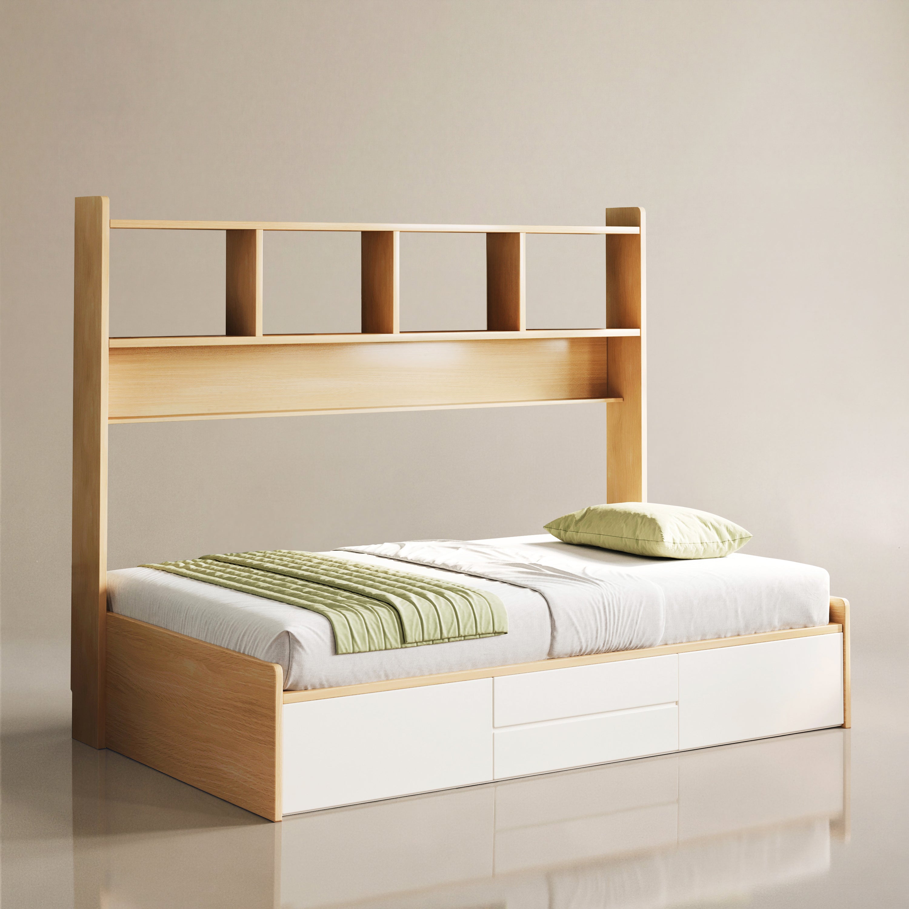 Bed C66-FK-M001 Modern Bed with Built-In Bookshelf 76.77"