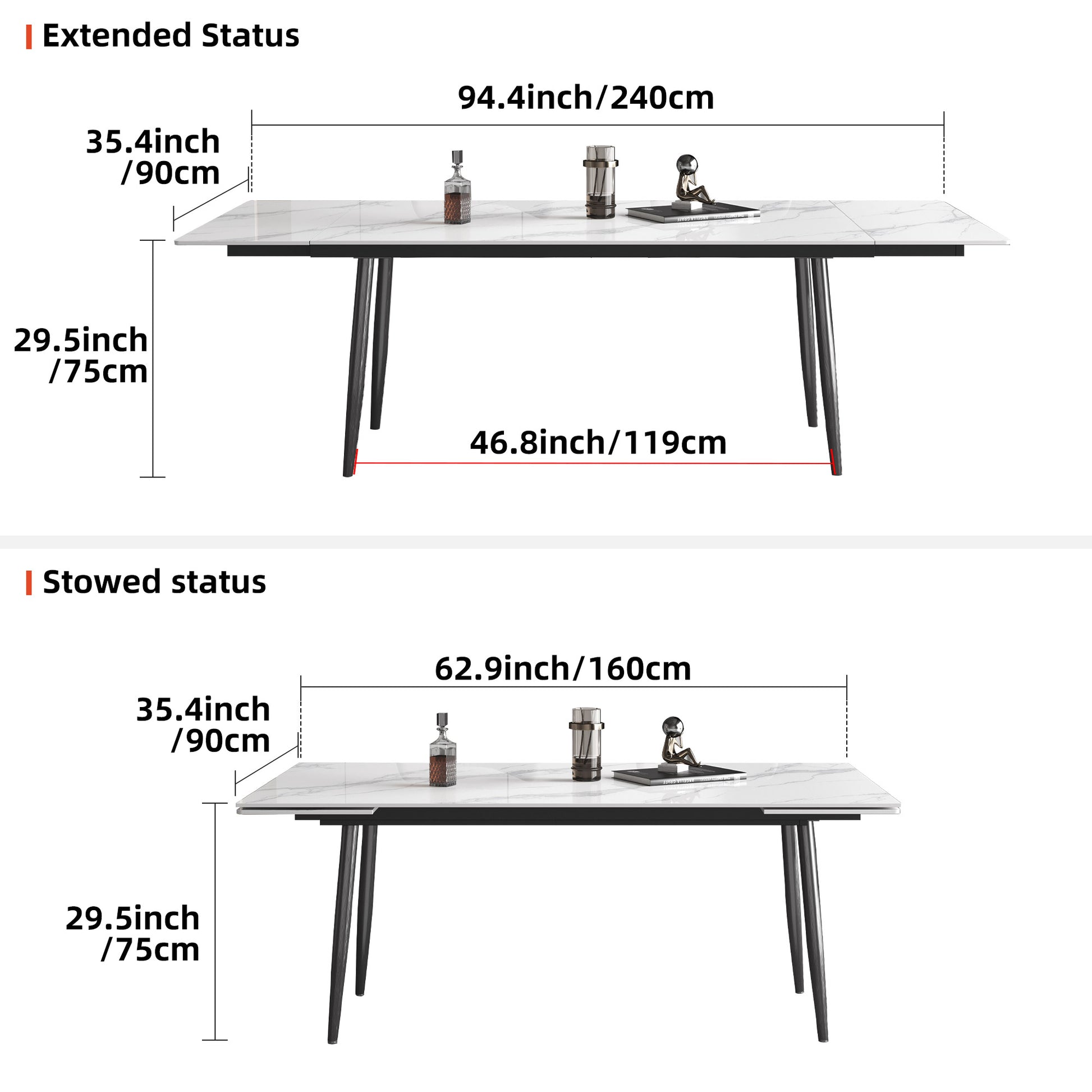 Dining Table WNSH1868 Modern Can Seat 6-10 People Extendable 62.9" to 94.4"