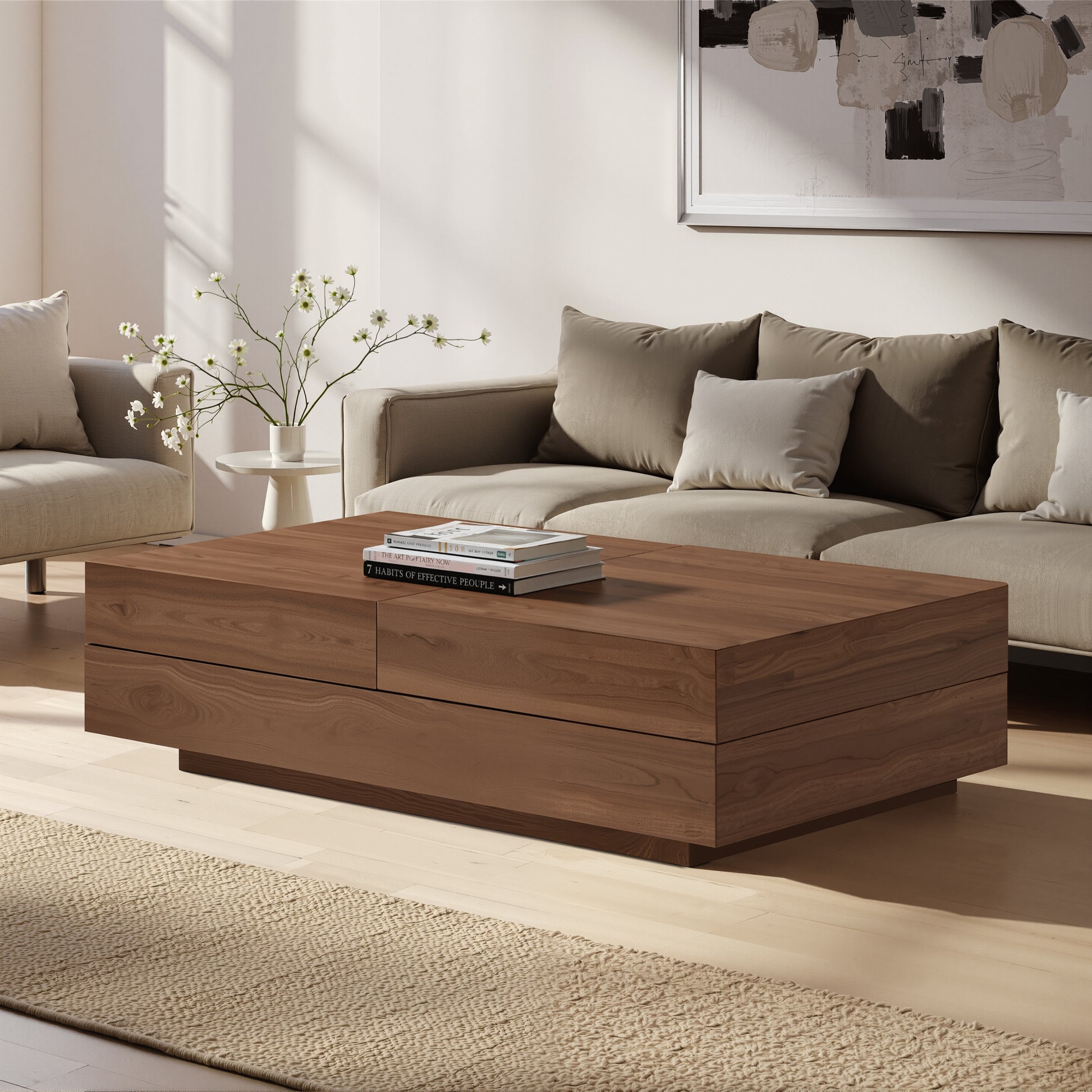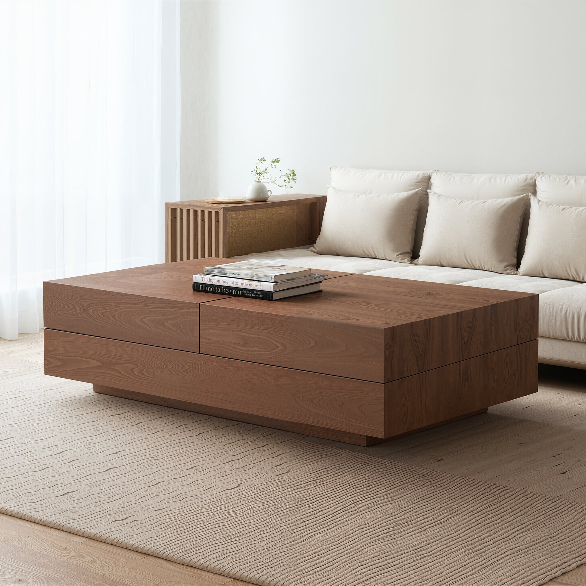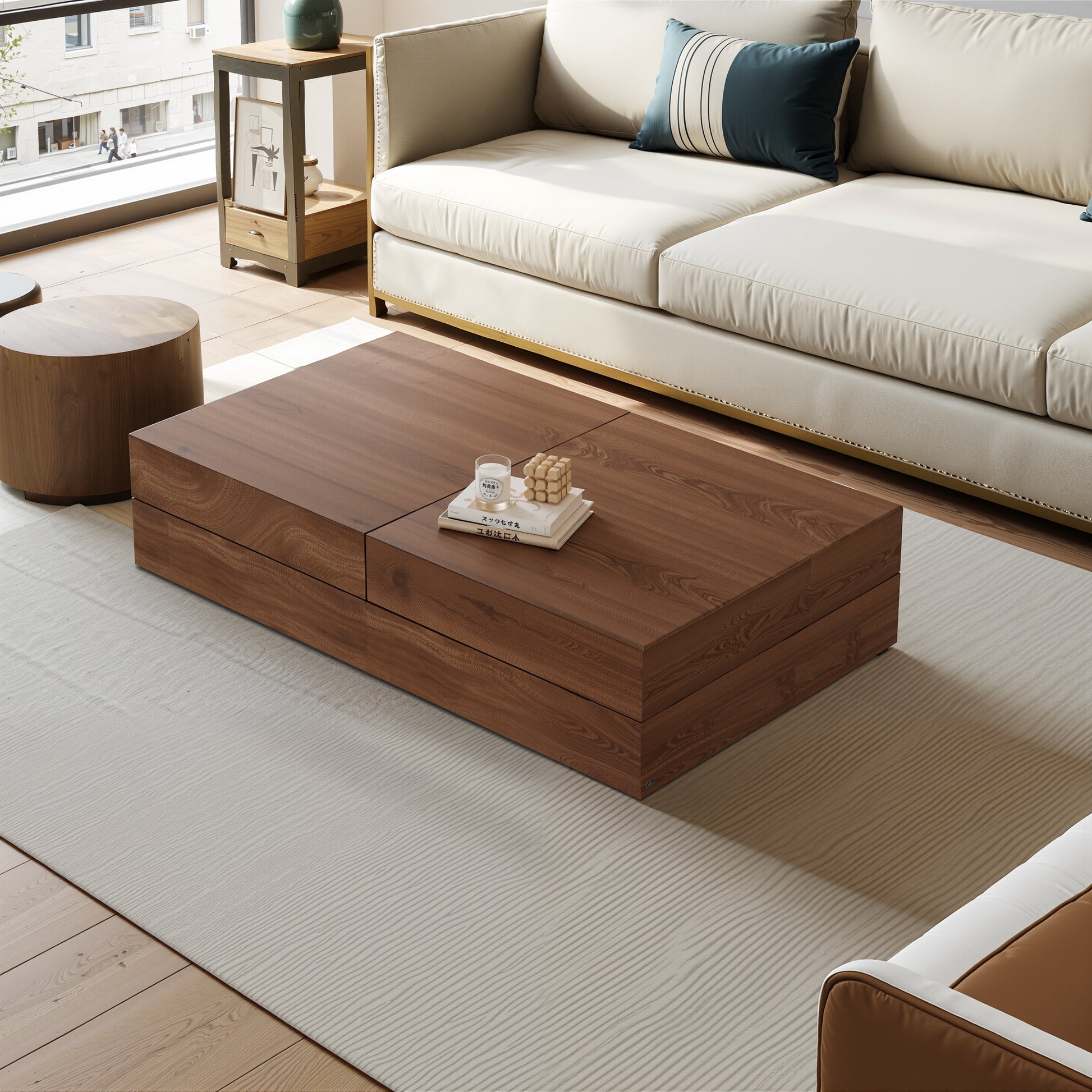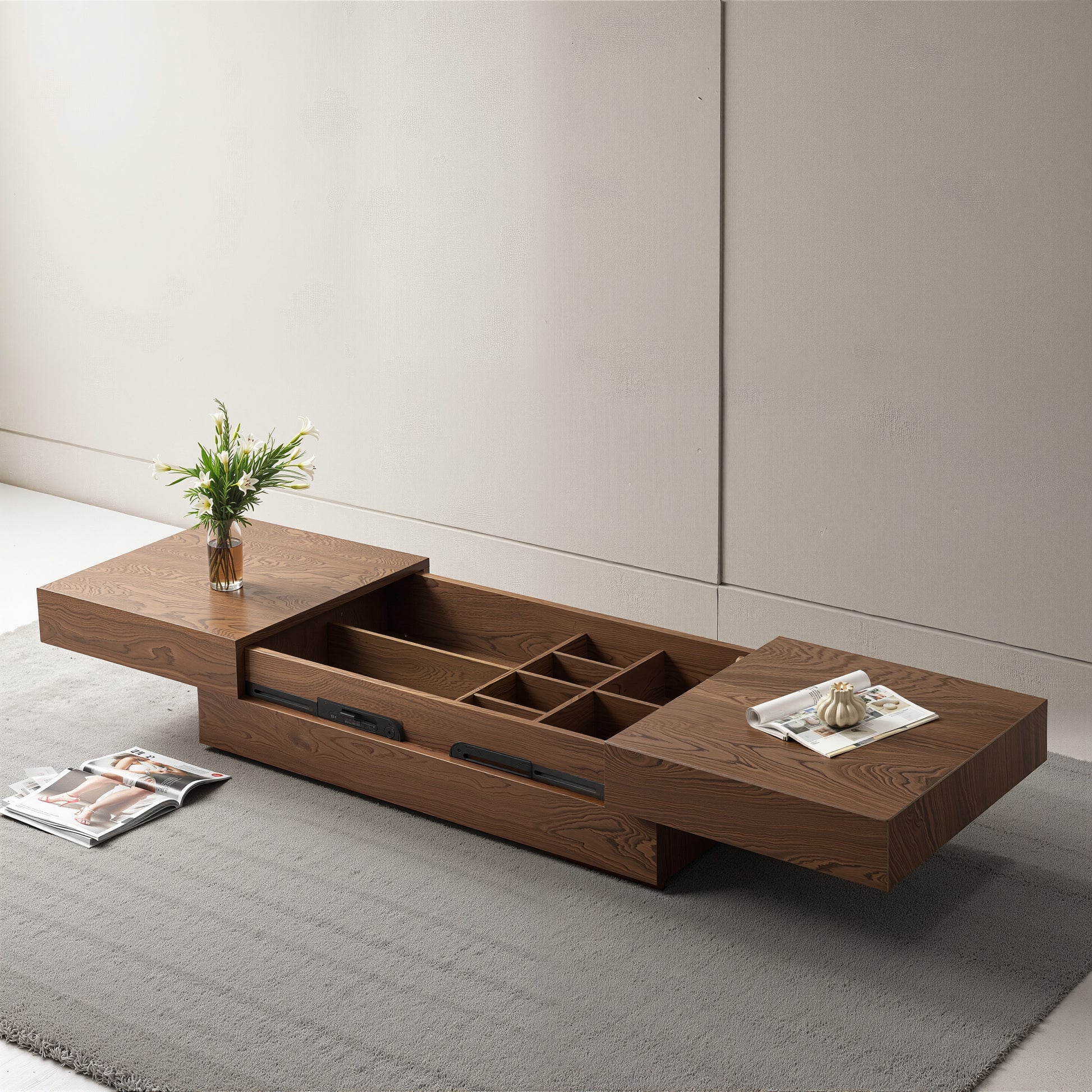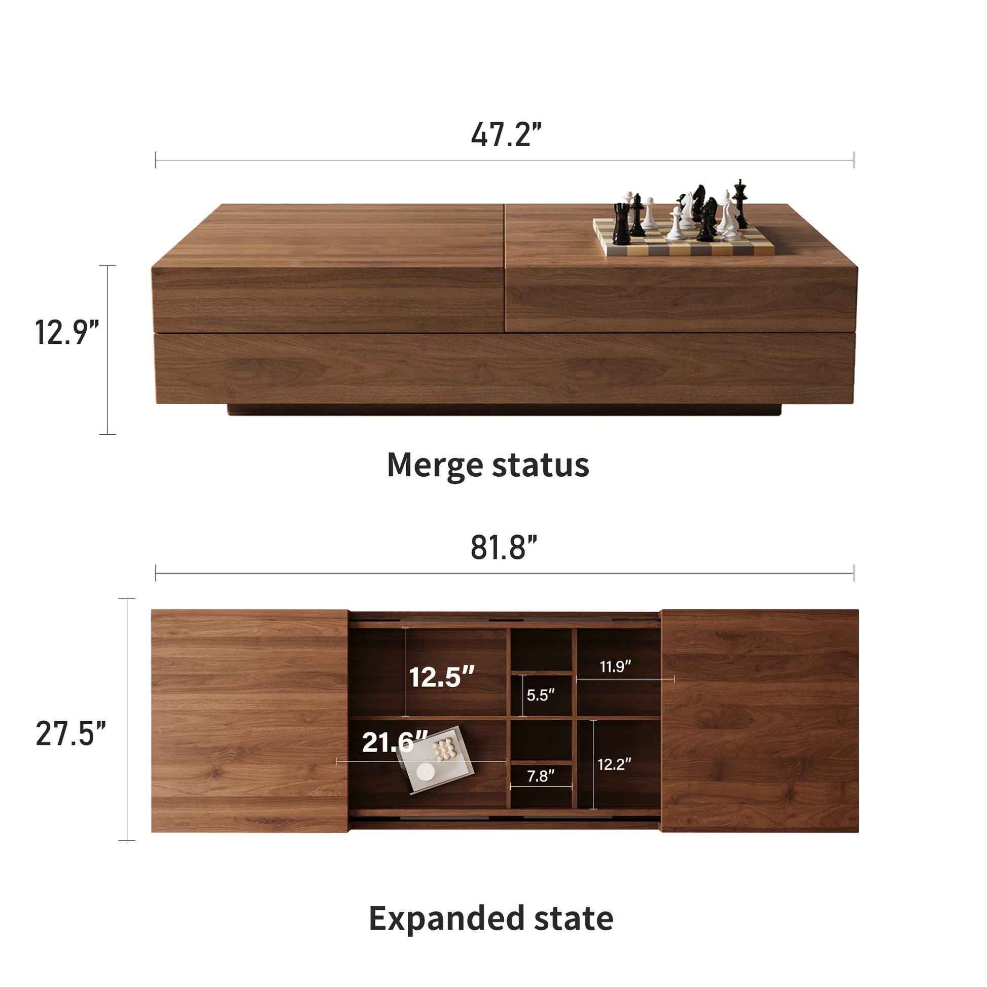 Coffee Table LSCJ1200 Mid-Century Spacious Storage Modern Adjustable Size 47.2"-81.8"