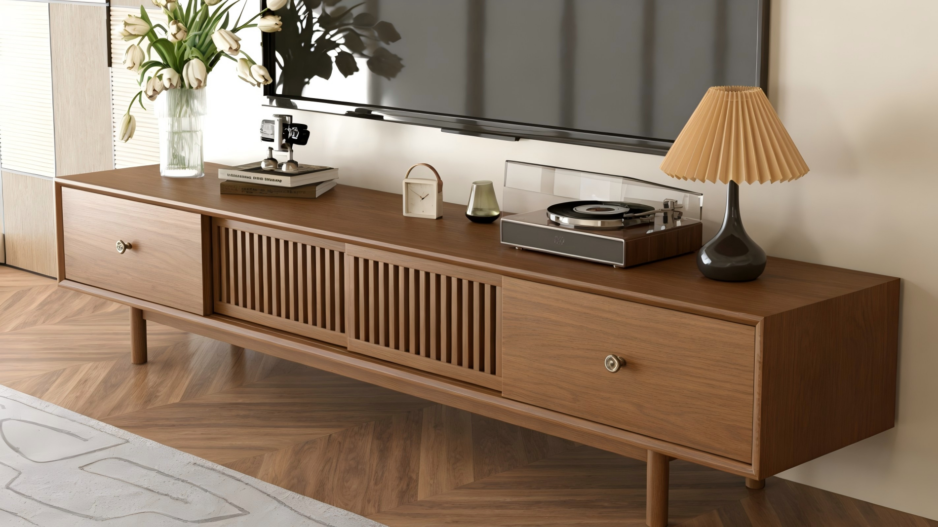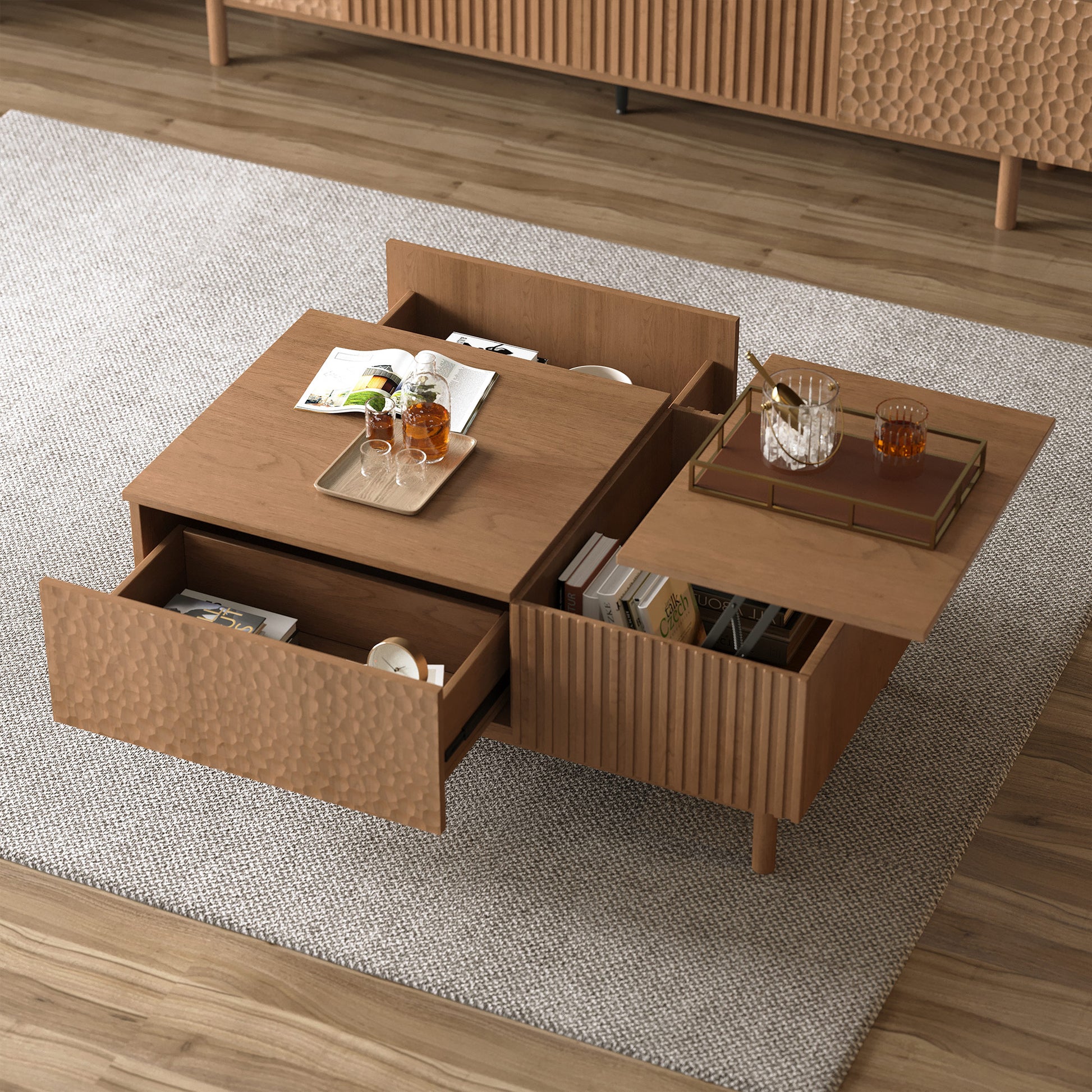 Smart Storage with Lift-Top Compartment: Beyond its beauty, it’s incredibly functional. The split tabletop design includes a lift-top compartment (or hidden storage access) alongside spacious drawers, providing a discreet place to stash remotes, laptops, and living room essentials to keep your space clutter-free.