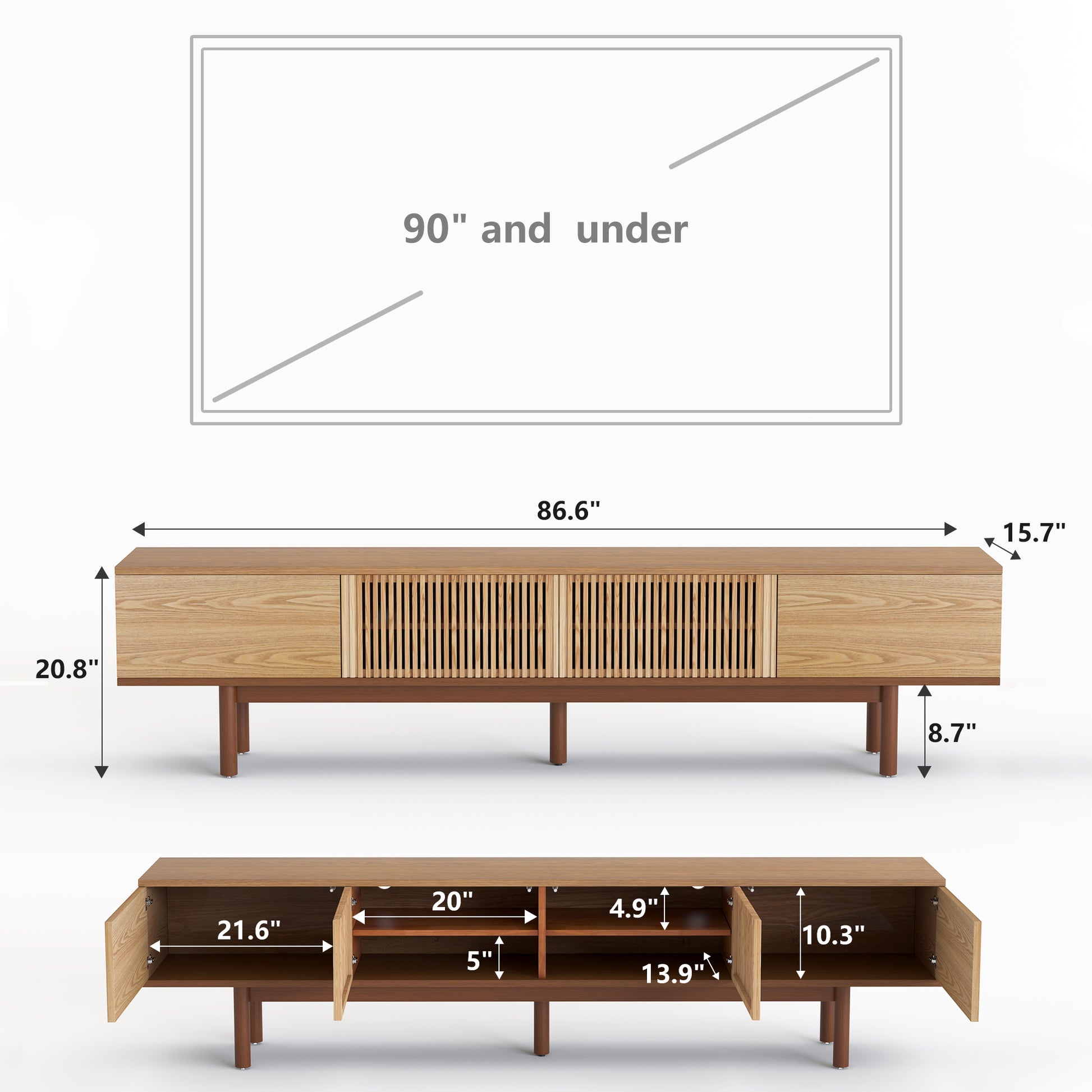 TV Stand FDDSG2200 Mid-Century Modern Cable Management 4-Door 86.6"