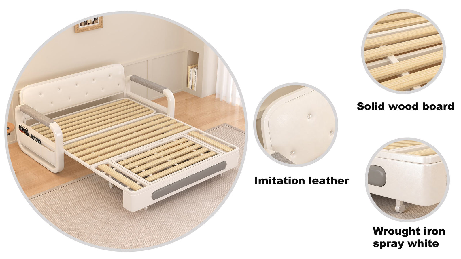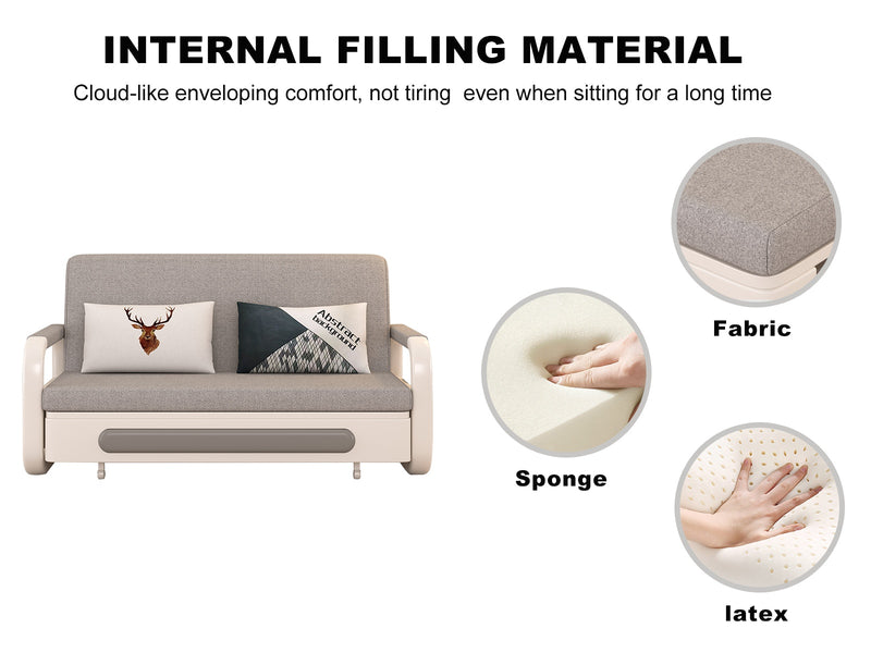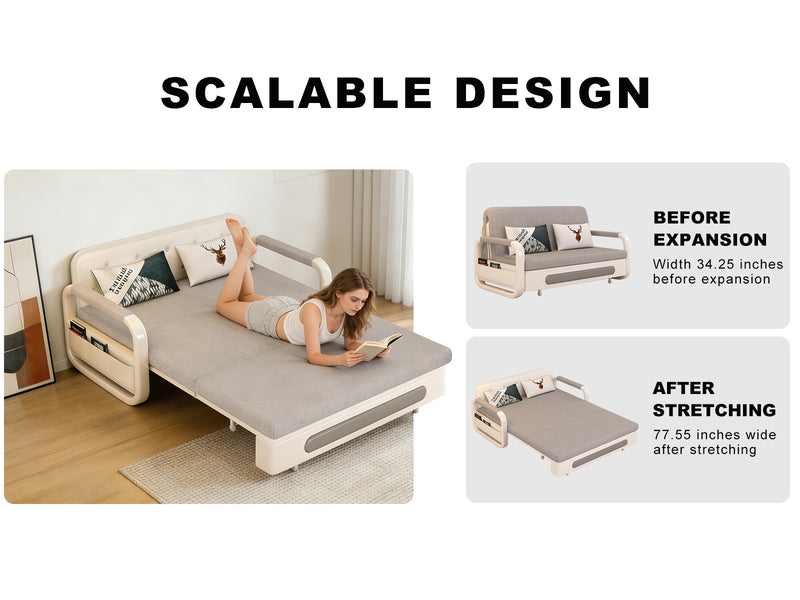 This 57.4-inch convertible sofa features a compact structure with a pull-out sleeper function. Designed for apartments, studios, and multifunctional rooms, it combines seating and sleeping in one unit.